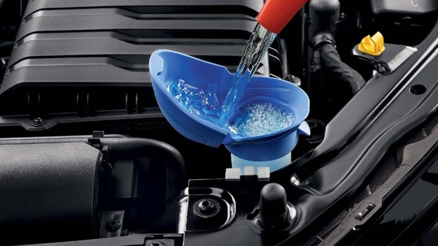 Nắp bình nước rửa kính dạng phễu—dễ châm, sạch sẽ.