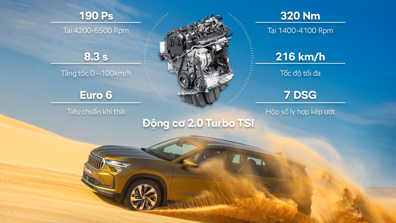 2.0 TSI 190 PS – 320 Nm, DSG 7 cấp & 4×4; 7 chế độ lái: Eco / Comfort / Normal / Sport / Snow / Off-road / Individual—tối ưu mọi cung đường.