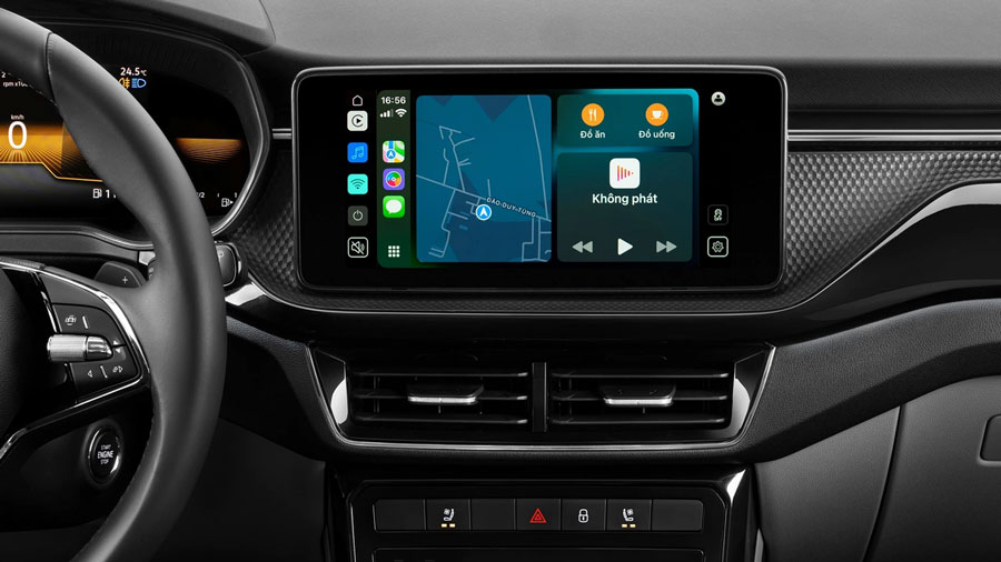 Màn hình giải trí trung tâm 10 inch: Thiết kế liền khối, giao diện trực quan và phản hồi mượt mà. Hỗ trợ kết nối Apple CarPlay và Android Auto không dây, mang đến trải nghiệm điều khiển và giải trí liền mạch trên mọi hành trình.