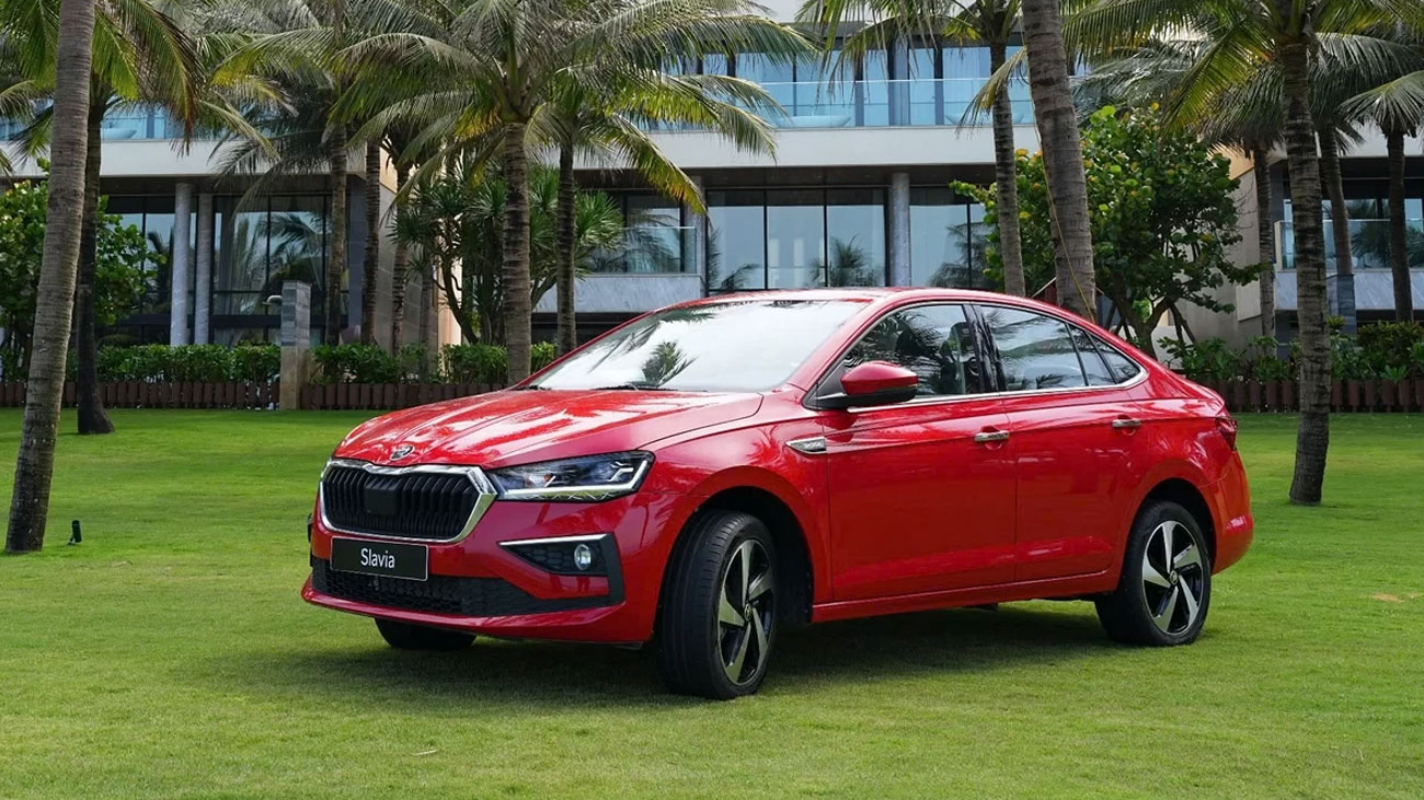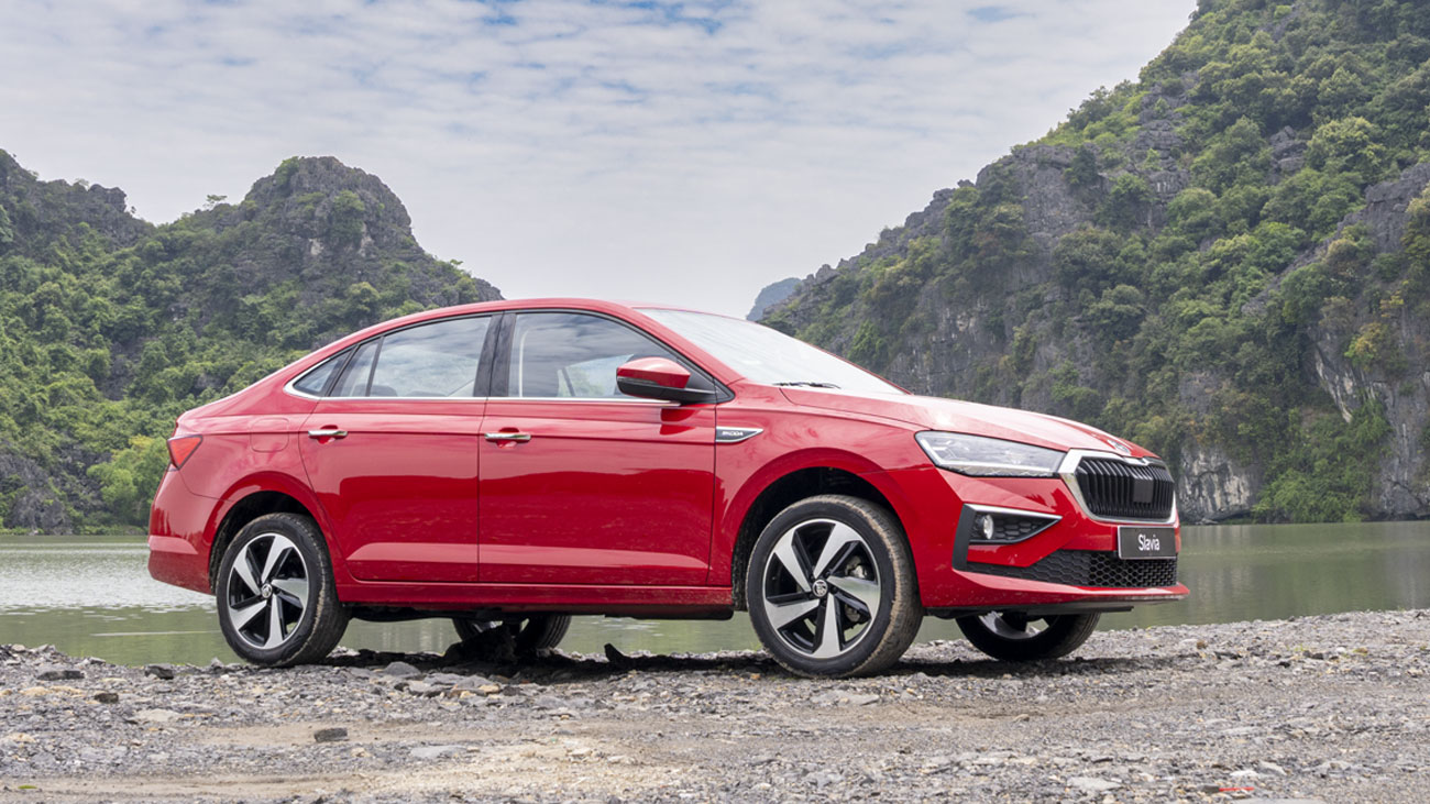 Lấy cảm hứng từ nghệ thuật pha lê, Slavia nổi bật với cụm đèn Skoda Crystalline trước/sau. Triết lý “Less is more” thể hiện qua đường gân sắc nét dọc thân xe và phần đuôi coupe-sedan thanh lịch. Kích thước dẫn đầu phân khúc: dài x rộng x cao 4.541 × 1.752 × 1.487 mm, trục cơ sở 2.651 mm, khoảng sáng gầm 178 mm.